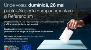 Cetățenii cu drept de vot din municipiul Cluj-Napoca pot afla numărul și adresa secției de votare la care sunt arondați de pe site-ul Primăriei, www. primariaclujnapoca.ro, sau accesând următorul link: Alegeri europarlamentare 2019.