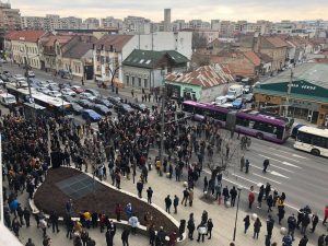 Protestatarii au blocat și traficul de pe bulevardul Eroilor, Chiar în fata sediului PSD.
