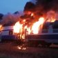 Un tren cu 100 de călători a luat foc în Teleorman.
